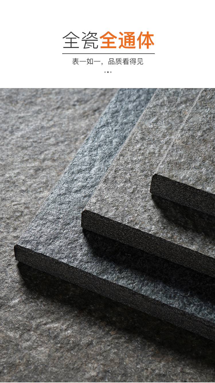 巖石面,模壓還原板巖紋理,啞光封釉強化其防潮防污屬性