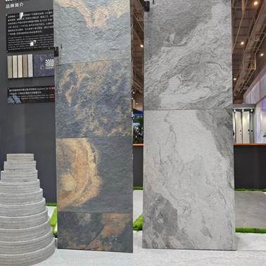 不同規(guī)格、不同厚度的熱門生態(tài)石英磚產(chǎn)品同臺亮相,臺面飾面、從厚到薄、由墻及地,充分展示其在不同場景和空間的應(yīng)用能力。
