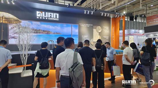 獨樹一幟的“泳池旁地磚系列”,以模擬泳池的方式對產(chǎn)品進(jìn)行實景式陳列,體現(xiàn)生態(tài)石英磚高端花色的超強空間運用和設(shè)計能力。隨著酒店及商業(yè)空間行業(yè)的發(fā)展,大眾對于建筑裝飾材料和建筑與室內(nèi)設(shè)計的認(rèn)知也在逐漸發(fā)生著變化。新型環(huán)保材料和創(chuàng)意空間設(shè)計的強強聯(lián)合成為了酒店及商業(yè)空間在眾多競爭對手中脫穎而出的重要動力之一。加強輸出和諧共生的自然環(huán)保理念,于繁華都市中靜心做事潛心打磨,實現(xiàn)從原料—加工—成品,瓷磚生產(chǎn)全過程的生態(tài)環(huán)保,并將此傳遞給更多人,共護(hù)綠色地球。憑借產(chǎn)品高顏值和簡約精致的產(chǎn)品造型引起人們駐足流連,創(chuàng)想無限的展廳設(shè)計和順應(yīng)大環(huán)境的主題吸引包括設(shè)計師、建筑師、地產(chǎn)商、開發(fā)商、酒店管理公司、物業(yè)管理公司、協(xié)會、媒體等駐足品鑒。展位人氣爆棚,一批又一批的客戶、經(jīng)銷商在經(jīng)過專業(yè)團(tuán)隊介紹產(chǎn)品后,都向廠方表達(dá)了強烈的合作意向。